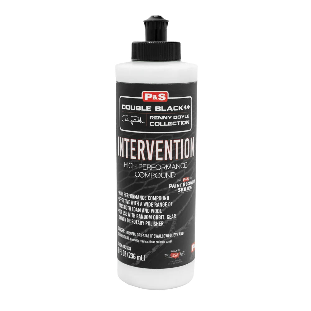 Intervention High-Performance Compound is part of the P&S Recovery Series, designed based on the performance characteristics of REHAB Correction Crème but with extra cut. As an aggressive, fast-acting compound, Intervention is ideal as the first step in the paint correction process, providing efficient removal of defects.  This versatile compound works seamlessly with wool, microfiber, and foam cutting pads to correct paint imperfections, including sanding marks, swirl marks, and scratches. Its aggressive formula, combined with a skilled technician, simplifies the paint correction process. The ease of use and quick product removal save time while delivering exceptional results.